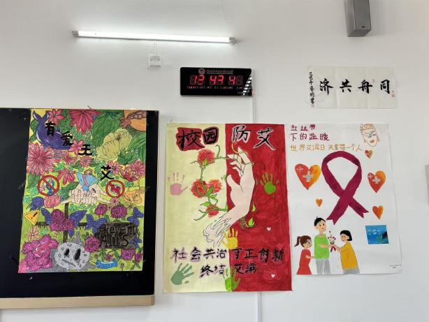 活动前期,资环学子积极响应海报创作号召,围绕艾滋病传播途径、科学预防措施、关爱感染者等核心内容,充分发挥创意才华,同学们以画笔为媒,将知识转化为直观生动的视觉作品。有的以红丝带为核心元素传递关爱初心,有的用漫画拆解防艾误区,有的以图文结合形式清晰科普检测治疗常识,每一幅作品都凝聚着对生命的敬畏与健康的期许。经过筛选,数十幅优秀海报在教室集中展出,成为一道兼具教育意义与艺术美感的风景线,吸引大批学生驻足观赏、交流学习。